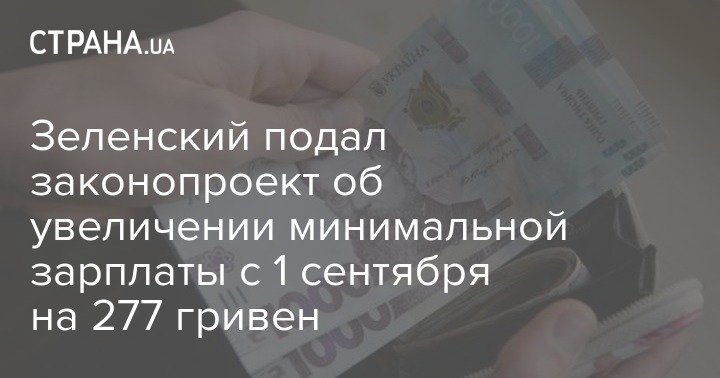 Владимир Зеленский подал на рассмотрение Верховной Рады законопроект "О внесении изменений в Государственный бюджет на 2020 год" относительно увеличения размера минимальной заработной платы до пяти тысяч гривен с 1 сентября текущего года до 5000 тысяч гривен (сейчас размер минимальной зарплаты составляет 4723 гривен).