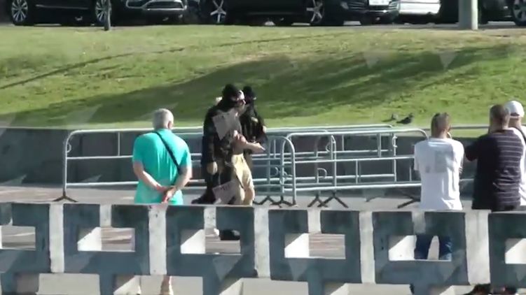 Работники спецназа продолжают задерживать протестующих в Минске. Кадр с видео