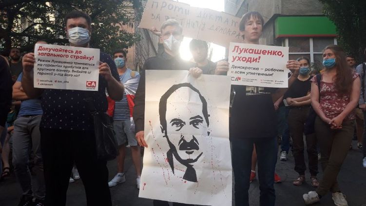 Под посольством Беларуси в Киеве зажгли файеры и требовали отставки Лукашенко. Одним из задержанных был крымчанин Александр Кольченко, который участвовал в большом обмене заключенными