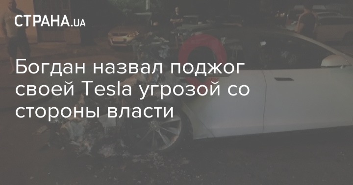 Экс-глава Офиса президента Андрей Богдан, чей автомобиль Tesla подожгли минувшей ночью в Киеве, расценил инцидент как угрозу со стороны власти.