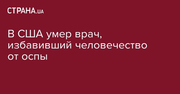 Американский эпидемиолог Дональд Хендерсон, который в конце 1960-х возглавил успешную кампанию по искоренению оспы в мире, скончался в возрасте 87 лет, передает ВВС.