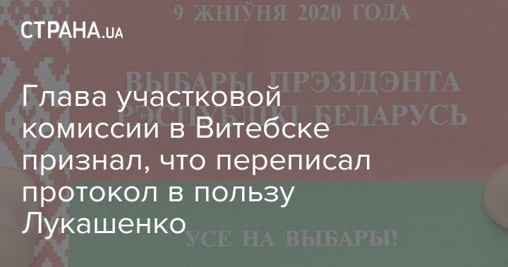 В Беларуси, где 9 августа состоялись президентские выборы, глава одной из участковых комиссий Витебска признал, что результаты голосования были сфальсифицированы. Члены комиссии переписали итоговый протокол в пользу Александра Лукашенко, хотя победу на участке одержала Светлана Тихановская.