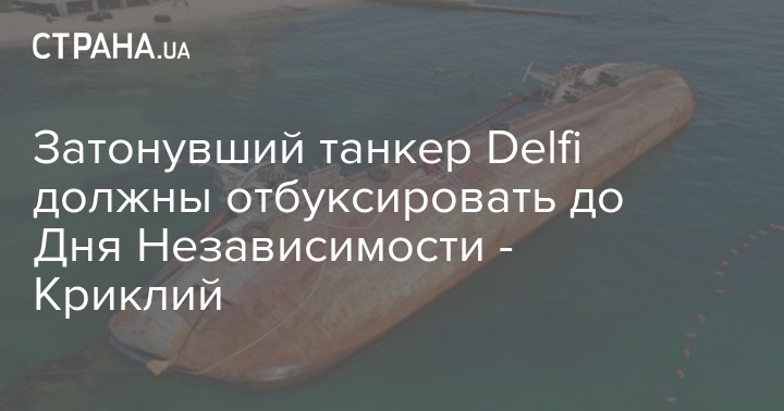 Компания "Краншип" должна отогнать танкер Delfi с одесского пляжа "Дельфин" в течение двух недель - до Дня Независимости Украины который отмечается 24 августа.