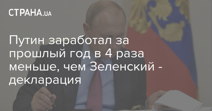 Путин заработал за прошлый год в 4 раза меньше, чем Зеленский - декларация