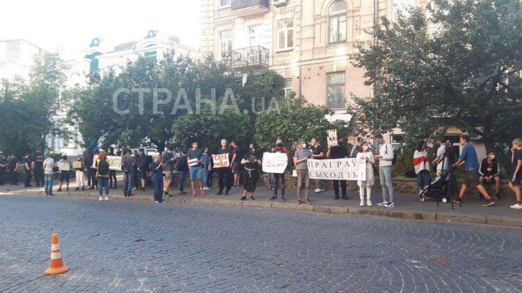 В эти минуты в Киеве проходит очередная акция под посольством Беларуси. Участники мероприятия собрались выразить солидарность с протестующими против президента республики Александра Лукашенко.