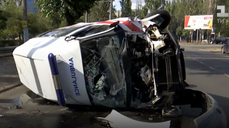 В Одессе автомобиль "скорой", которая принадлежит Нацгвардии, угодил в ДТП. Карета "скорой" столкнулась с легковушкой и перевернулась на бок. На тот момент в "скорой" были двое: водитель и фельдшер. Они получили травмы.
