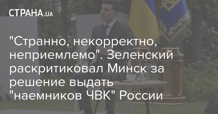 Президент Украины Владимир Зеленский назвал выдачу задержанных в Беларуси российских сотрудников ЧВК "Вагнер" России странным, некорректным и неприемлемым шагом.