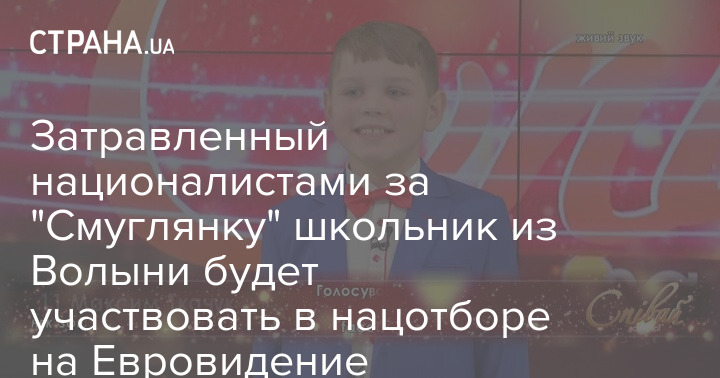 Максим Ткачук, 12-летний школьник из Волыни, которого весной националисты из "Свободы" травили за победу на песенном конкурсе Stars of the Albion в Лондоне с песней "Смуглянка",  будет участвовать в национальном отборе на детское "Евровидение-2020".