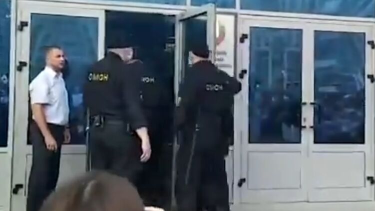 Также издание опубликовало видео, на котором относительно небольшая (до десяти человек) группа правоохранителей спокойно и неторопливо входит в двери. В это время на площади у здания гудит недовольная толпа.