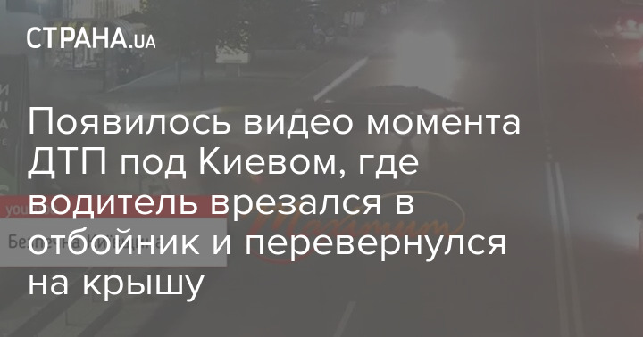 Появилось видео момента ДТП под Киевом, где водитель врезался в отбойник и перевернулся на крышу