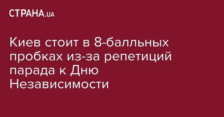 В результате проведения репетиции парада ко Дню Независимости в центре Киева образовались пробки как минимум в 8 баллов.