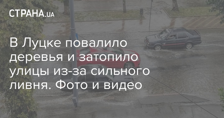 В Луцке сильный ливень затопил улицы. Из-за мощного ветра деревья начали падать прямо на проезжую часть.