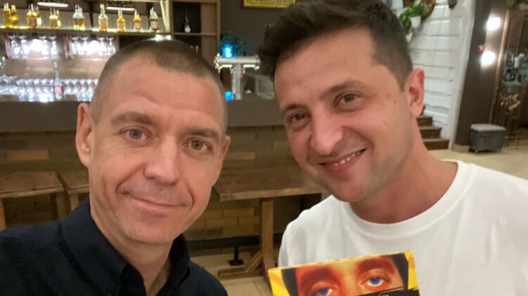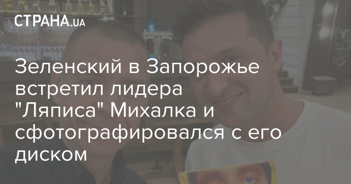 Президент Украины Владимир Зеленский в ходе поездки в Запорожье, где казак саблей разрубил огурец на его ладони, встретился с лидером групп "Ляпис-98" и Brutto Сергеем Михалком.