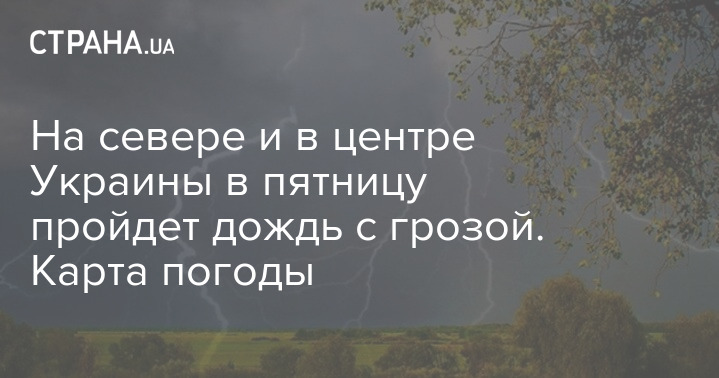 На севере и в центре Украины в пятницу пройдет дождь с грозой. Карта: Укргидрометцентр