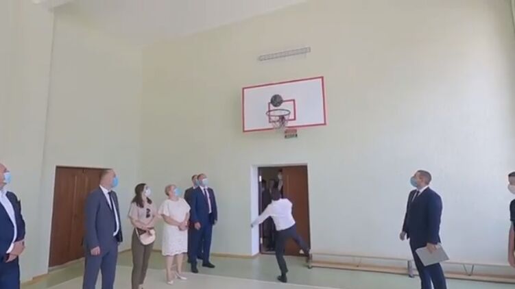 Президент Украины Владимир Зеленский, который 21 августа находится с рабочей поездкой в Николаеве, посетил школу-интернат №4. Там он решил продемонстрировать свои навыки в баскетболе и забросил мяч в кольцо.