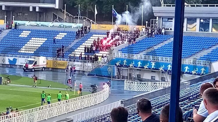 Ультрас "Динамо" ворвались на стадион во время первого матча клуба при Луческу и зажгли файеры. Фото: Страна