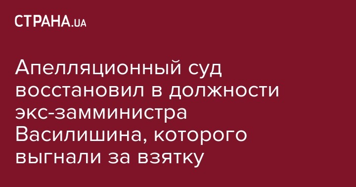 Апелляционный суд Киева удовлетворил жалобу бывшего заместителя министра здравоохранения Романа Василишина об отстранении его от должности. Об этом сообщает пресс-служба суда.