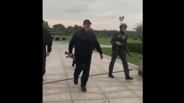Как видно на записи, Лукашенко выходит из вертолета с автоматом в руках и черном бронежилете. На видео он уточняет: "Там никого не осталось, да?".