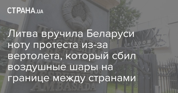 Литва вручила Беларуси ноту протеста из-за вертолета, который сбил воздушные шары на границе между странами