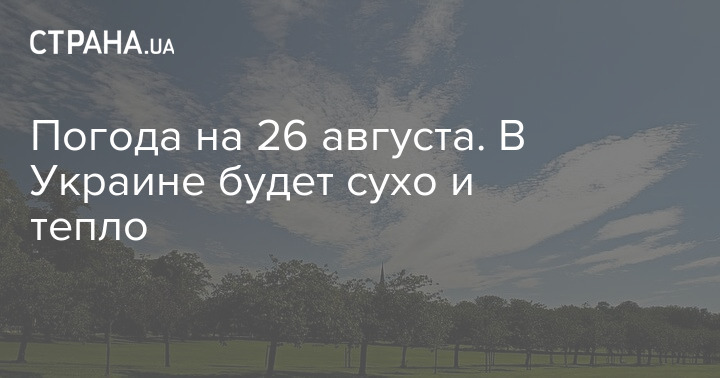 В среду, 26 августа, практически во всех областях Украины ожидается сухая погода. В западных и северных областях температура воздуха будет умеренной.