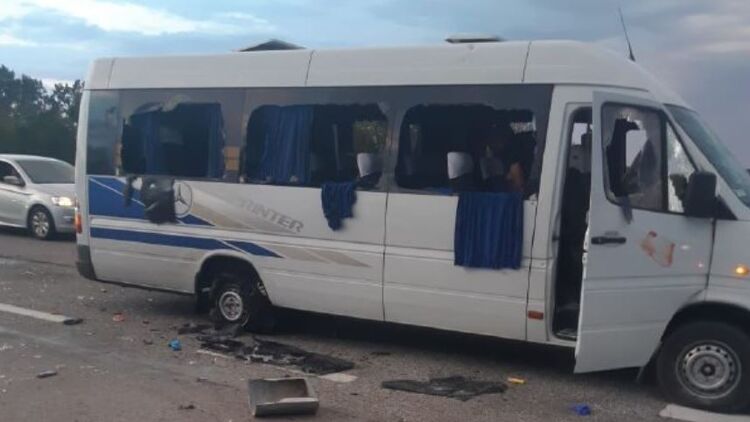 Появились фото и видео с места расстрела автобуса националистами на трассе под Харьковом