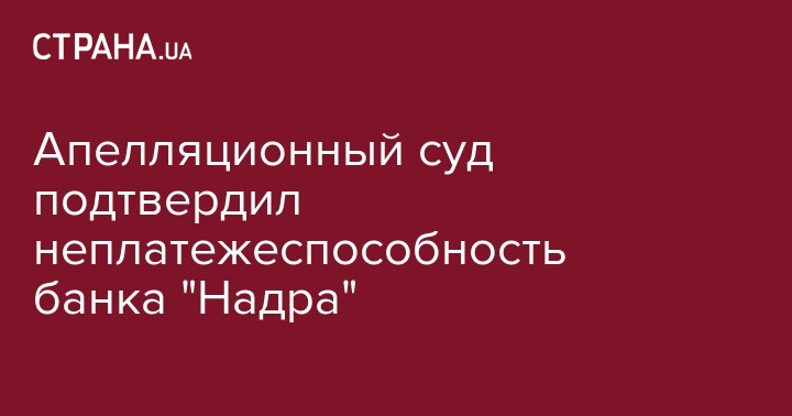 Апелляционный административный суд Киева принял решение, подтверждающее правомерность и достаточность действий Национального банка Украины по отношению к банку ПАО КБ "Надра". Нацбанк ранее отнес это финучреждение в категорию неплатежеспособных, сообщает пресс-служба финрегулятора.