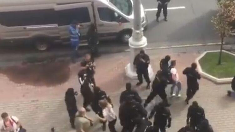 В центре Минска начали задерживать протестующих. Видео: twitter.com/bbcrussian
