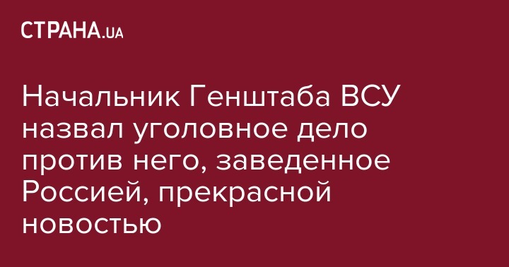 Начальник Генштаба ВСУ назвал уголовное дело против него, заведенное Россией, прекрасной новостью