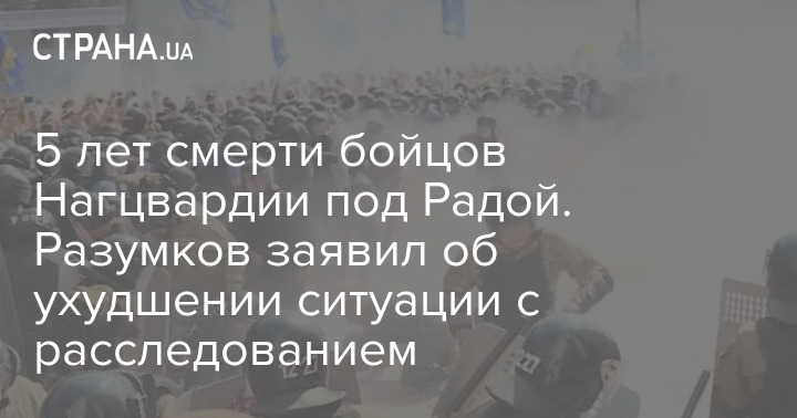 Спикер Верховной Рады Дмитрий Разумков заявил, что дело о смерти бойцов Национальной гвардии в результате взрыва гранаты под зданием парламента в 2015 году "не сдвинулось с мертвой точки".