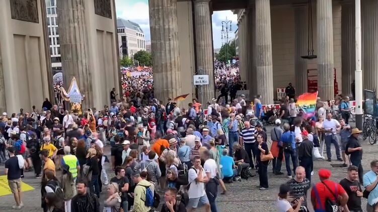 На выходных в Берлине прошла акция против коронавирусных ограничений. Кадр с видео