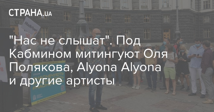 Днем в четверг, 3 сентября, у здания Кабинета министров в Киеве началась акция "Нас не слышат", которую организовал Всеукраинский музыкальный профсоюз. Участники митинга требуют от правительства остановить дискриминацию и избирательный запрет предпринимательства в музыкальной сфере. На мероприятии присутствуют певица Оля Полякова, рэперша Alyona Alyona и музыкант Алина Паш.