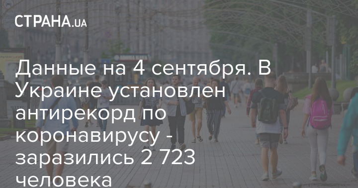 Данные на 4 сентября. В Украине установлен антирекорд по коронавирусу - заразились 2 723 человека