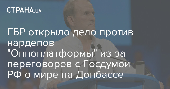 Государственное бюро расследований (ГБР) по заявлению депутата от фракции "Голос" Соломии Бобровской открыло уголовное производство по статье "госизмена" по факту поездки нардепов от "Оппозиционной платформы - За жизнь" Медведчука, Кузьмина, Колтуновича, Плачковой, Рабиновича на переговоры в Госдуму РФ в марте 2020 года.