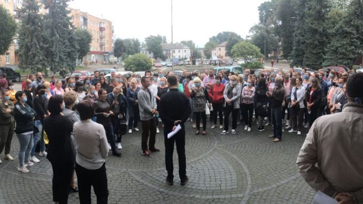 По информации Суспильного, в понедельник, 7 сентября к зданию костопольской райадминистрации вышли более сотни протестантов. Они требовали от городских властей отменить дистанционное обучение в школах.