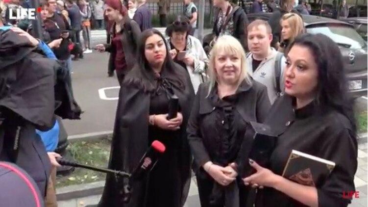 У суда в Москве во время зачтения приговора Ефремову собрались маги и шаманы. Скриншот из видео