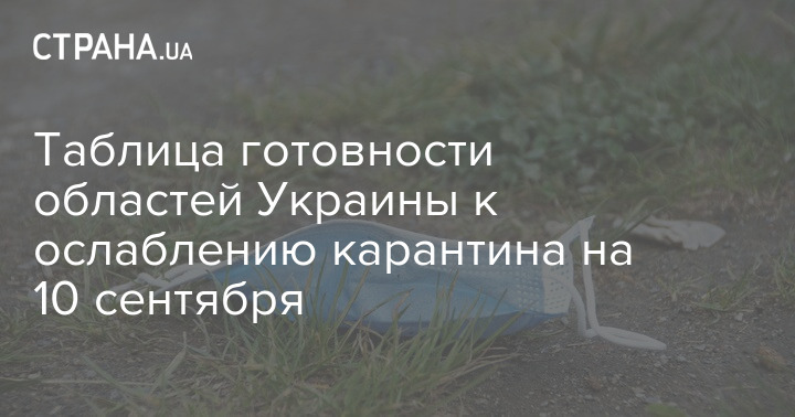 Таблица готовности областей Украины к ослаблению карантина на 10 сентября