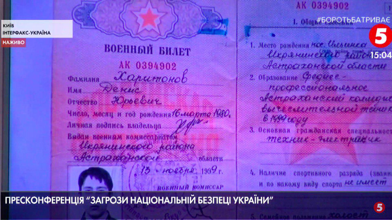 Бывший генпрокурор Юрий Луценко продемонстрировал документы на некоторых из "вагнеровцев", в том числе военный билет на имя Дениса Харитонова, который, по утверждению Луценко, был членом группы, сбивавший украинские самолеты.