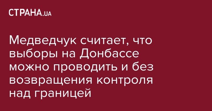 Лидер движения "Украинский выбор" Виктор Медведчук не соглашается с заявлениями представителей власти о том, что выборы на удерживаемых сепаратистами территориях возможны только после того, как Украина восстановит контроль на границе с Россией. Об этом он заявил в интервью Radio Free Europe.