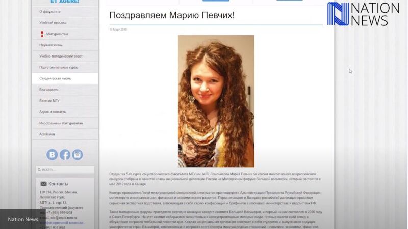 Информацию о 33-летней Певчих, правда ее назвали не Марина, а Мария, опубликовало издание aif.ru. По его данным, в 2010 году она окончила социологический факультет МГУ. На последнем курсе возглавила российскую студенческую делегацию на Молодежном форуме Большой восьмерки в Канаде.