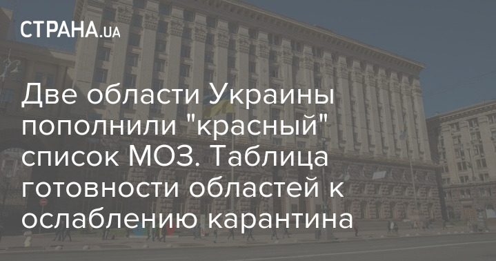 По сравнению с прежними показателями, список "красных" областей пополнили Запорожская и Луганская области. Если данные будут повторяться несколько дней подряд, комиссия может перенести неблагополучные районы в зону с более жестким карантином. Всего к ослаблению ограничений не готовы: