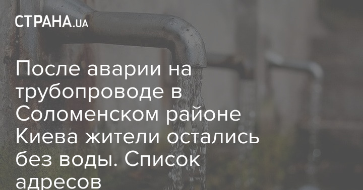 Часть Соломенского района Киева осталась без водоснабжения из-за аварии на трубопроводе, сейчас коммунальные службы пытаются исправить ситуацию.
