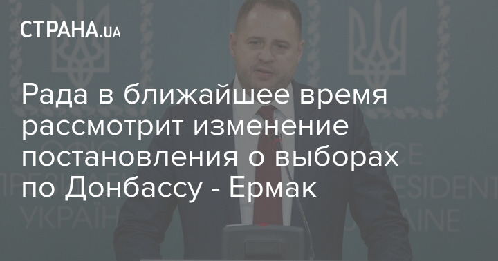 "Это постановление сегодня есть, и оно в ближайшее время будет вынесено в зал Верховной Рады, где будет решаться его судьба как юридического документа", - сказал в воскресенье руководитель Офиса президента Украины Андрей Ермак в эфире телеканала "Украина".
