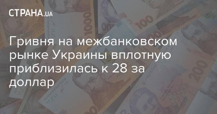 В понедельник курс гривни на межбанковском валютном рынке упал до 27,990 грн/$1 с 27,945 грн/$1 в предыдущий рабочий день