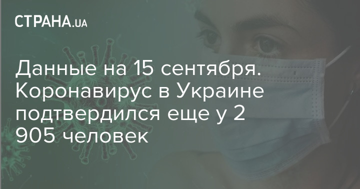 В Украине по состоянию на утро вторника, 15 сентября, зафиксировано 2 905 новых случаев заражения Covid-19.
