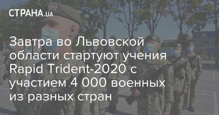 Во Львовской области начинаются военные многонациональные учения "Rapid Trident-2020". В них поучаствует около 4 000 военных из 10 разных стран. Торжественная церемония открытия учений состоится уже завтра, 16 сентября.