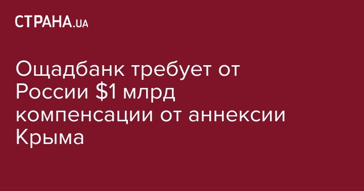 В пятницу, 26 августа, Ощадбанк подал иск против России о компенсации активов в Крыму на сумму порядка $1 млрд. Об этом сообщает пресс-служба банка