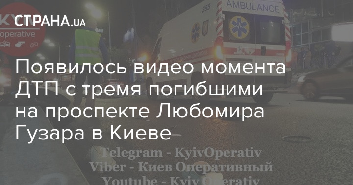 Появилось видео момента ДТП с тремя погибшими на проспекте Любомира Гузара в Киеве