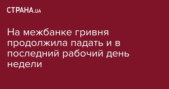 На межбанке гривня продолжила падать и в последний рабочий день недели