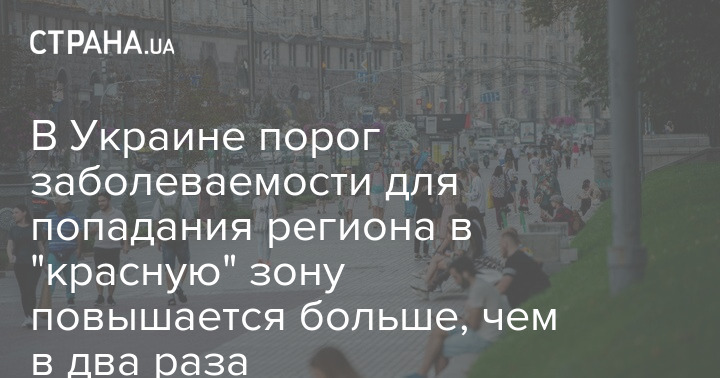 По данным Минздрава, 17 сентября средний уровень заболеваемости в Украине за последние 14 дней составляет 99,8 человек на 100 тысяч населения, а значит порог для отнесения территории к "красной" зоне повышен почти до 500 человек на 100 тысяч населения.