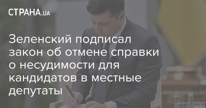 Президент Украины Владимир Зеленский подписал закон, который отменяет обязательную справку о несудимости при процедуре регистрации кандидатов на местных выборах.
